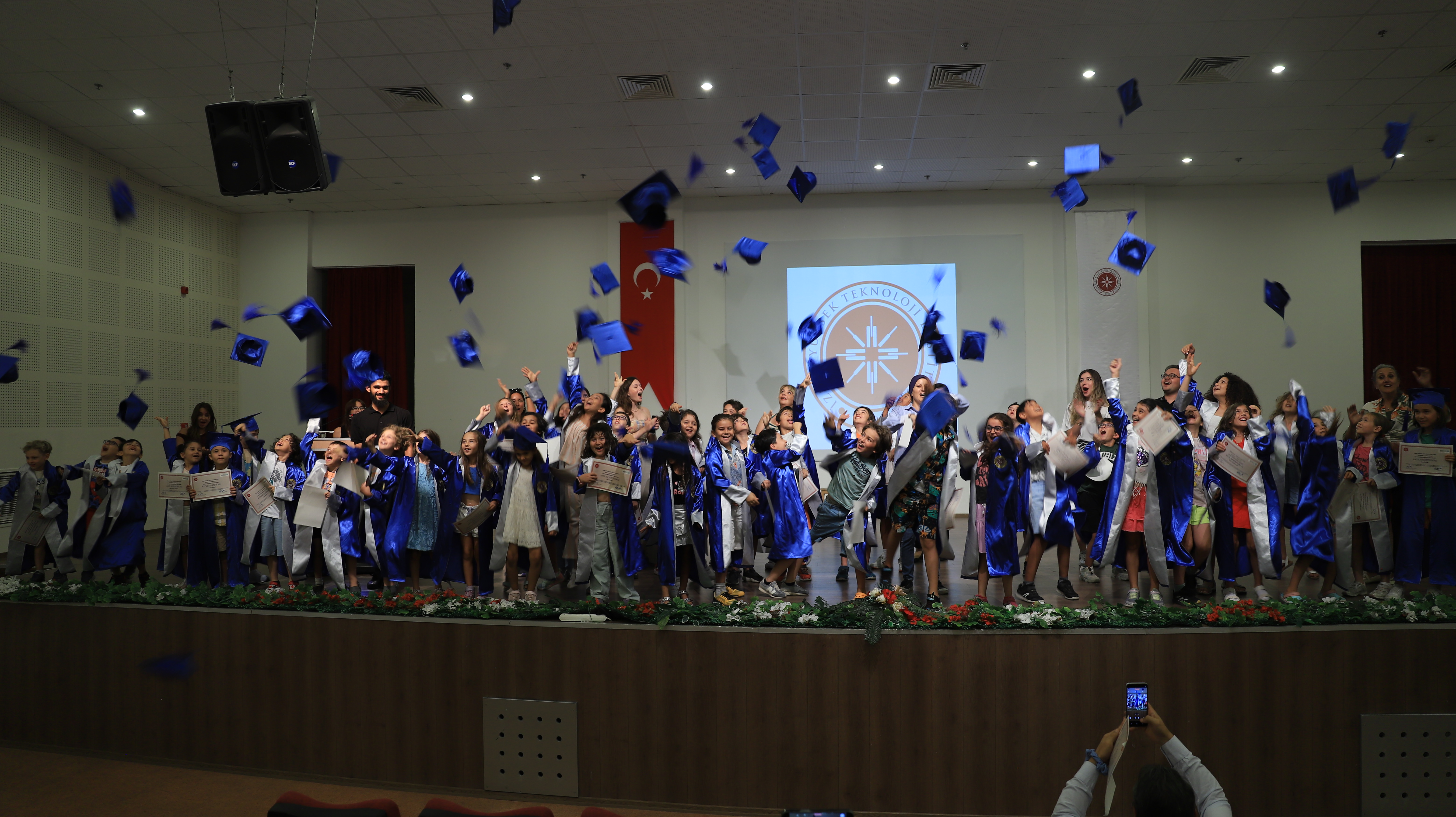 GenelİYTE Çocuk Üniversitesi Yaz Kampı Tamamlandı 4 Temmuz 202522 Ağustos 2025 İYTE Çocuk Üniversitesi koordinasyonunda düzenlenen Yaz Kampı, mezuniyet töreniyle sona erdi. 30 Haziran – 4 Temmuz tarihleri arasında gerçekleşen kamp boyunca çocuklar, bilim, eğlence ve keşif dolu bir deneyim yaşadı.