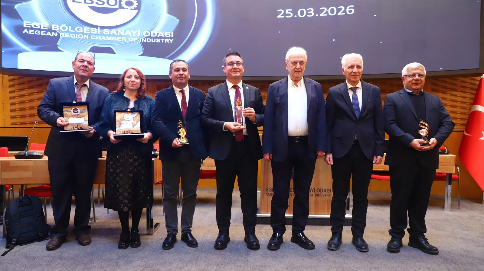 EBSO tarafından düzenlenen ödül töreninde, İzmir Yüksek Teknoloji Enstitüsünün son yıllarda sanayi sektörüyle yürüttüğü entegre çalışmalar ve bölge ekonomisine sunduğu bilimsel katkılar onurlandırıldı. İYTE Rektörü Prof. Dr. Yusuf Baran, göreve geldiği günden itibaren üniversite-sanayi iş birliğini kurumsal bir öncelik haline getirmesi, bu alanda yürüttüğü kararlı çalışmalar ve geliştirdiği stratejik projeler, elde ettiği ulusal ve küresel başarılar ve akademik liderlik vizyonuyla “Üstün Hizmet / Onur Ödülü”ne layık görüldü.